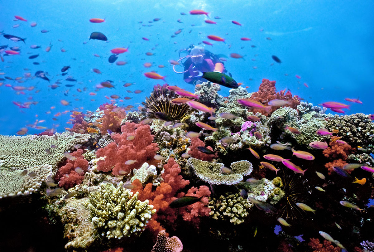 The Great Sea Reef, locally known as Cakaulevu, has been central for lives in Fiji. It is located off the northern shore of the island of Vanua Levu. It is the third longest continuous barrier reef in the world. The survey of the Great Sea Reef has revealed that it houses a diverse marine population, including mangroves and endemic fish.