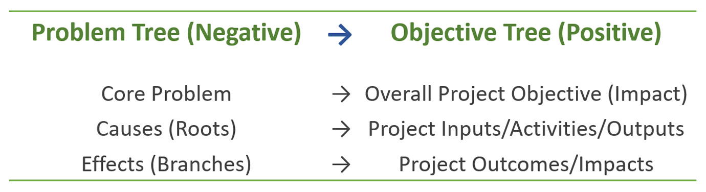 Briefly, the transformation process from Problem Tree to Objective Tree can be simplified as below: