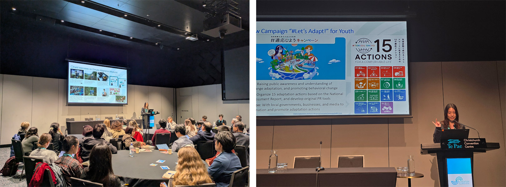 | Overview | This session brought together researchers, government officials, and practitioners from Asia and Europe to discuss strategies for linking scientific knowledge to social implementation, focusing on the theme of “how to enhance adaptation practice”. Nemoto introduced initiatives related to communication strategies for climate change adaptation. In particular, she highlighted efforts to promote citizen-participatory adaptation actions through A-PLAT’s core content and the newly launched “#Let’s Adapt” campaign. She also emphasized the importance of “communication that connects science with society,” aiming to convey scientific information clearly and accessibly to the public. In the panel discussion, participating institutions identified shared challenges—including evaluating the effectiveness of adaptation actions and addressing regional information gaps—reinforcing the need for cross-sector collaboration among education, public outreach, and policy to strengthen adaptation practice. |