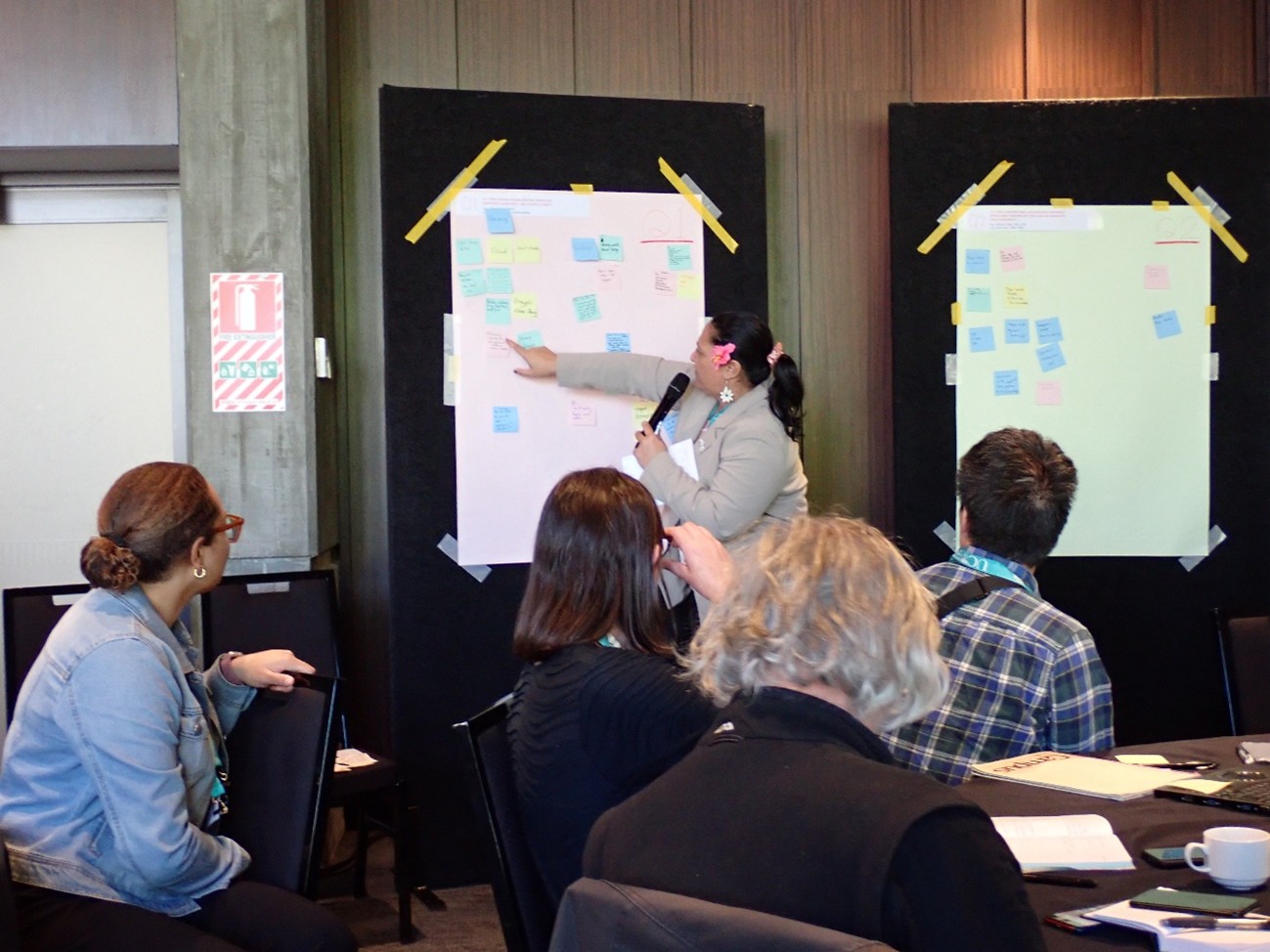 A collaborative Knowledge Café session titled “Addressing the Gap: Prioritising Needs of Pacific Island Countries and Territories for Climate and Impact Projection Tools” was moderated by Reiko Seki (AP-PLAT). The session began with presentations by four presenters: Hiroya Abe (AP-PLAT), Manabu Watanabe (blue and tech – partner company developing the data viewer), Lianne Webb (CSIRO), and Yvette Kerslake (PCCC), followed by an interactive hands-on discussion.