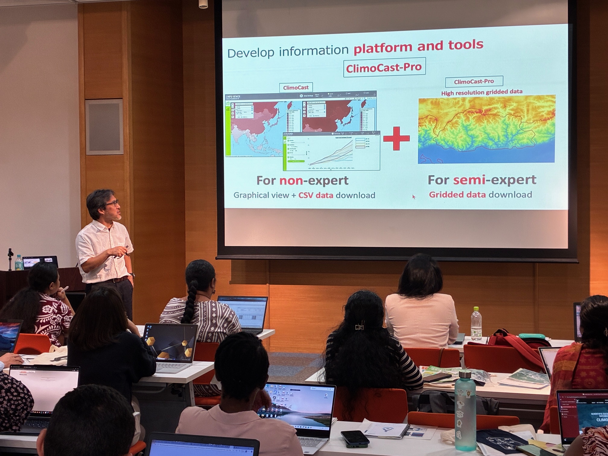 The National Institute for Environmental Studies (NIES) hosted a workshop as part of the JICA Thematic Training Course on Climate Change Adaptation. During the half-day program held on 17 October 2025, Dr. Yuji Masutomi of AP-PLAT delivered a hands-on lecture introducing AP-PLAT, its activities and online scientific tools.